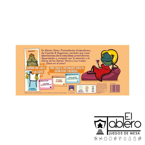 Explora el mundo de las citas con Master Dater, el juego de cartas de Cyanide & Happiness publicado por Asmodee. En cada partida, los jugadores combinan atributos inesperados para crear pretendientes únicos y competir por la atención de los demás en una batalla de creatividad y persuasión. Cada ronda es una oportunidad para sorprender con combinaciones extravagantes y convencer a los demás de que tu personaje es el mejor candidato. Master Dater es un juego que mezcla ingenio y diversión, ideal para quienes disfrutan de partidas llenas de risas y creatividad. 300 cartas